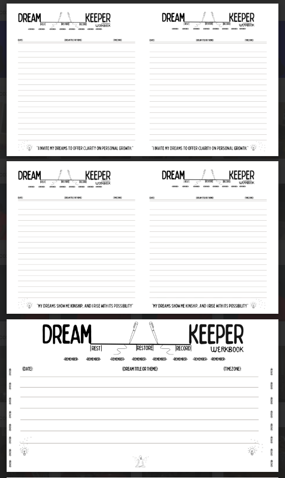 the dream keepers journal was designed to be a part of your toolkit for remembering and tending to your inner world. it was created for moments before, between, and after rest to support transitions, creativity, and grief. This resource will offer space to hold dream fragments, emotions, symbols, and messages without pressure to interpret or explain. there is no right way to use them: write, draw, or simply notice. the practice is about slowing down and listening. the journals are currently offered as free downloads to keep dreaming accessible, with expanded and printed editions to come for those who wish to deepen the practice.